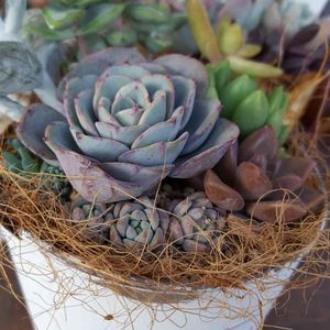 ボロボロになった寄せ植えたちを解体して、大きな寄せ植えに仕立て直しました🍒 置き場所問題も発生してきたので、おひとり様にしようか迷っていた葉挿しから育てた子や、名前の分からない子たちも思い切って一緒に♥ 自給自足で寄せ植えが作れるようになってきて嬉しい〜👏 あ、悲しいこともありました💦 だいぶ涼しくなってきたからと、水やり後の水滴飛ばしをサボったせいか....ロメオがジュレて腐りました.....うわぁぁん😭😭 葉挿しと成長点が辛うじて残りましたが...どっちも無理そうだな😢