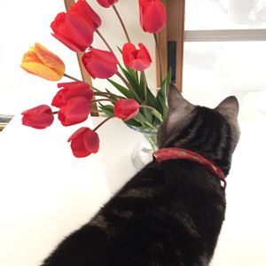 花をいけると必ず寄って来るギャル テーブルの上はのっていいとこー?