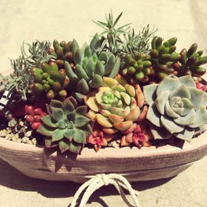 今年は多肉の寄せ植えを🎁 もっと明るく可愛く作りたかったけど 難しい〜😅 作った時は綺麗だった紅化粧さんが 変形してきてる💦