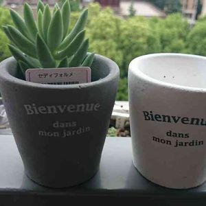 息子の家庭科用品のフェルトを買いに百均へ。 可愛いセメント鉢、しかも穴付き。 それとセディフォルメさん。 樹氷かと思いましたが別物なんですね。 この鉢気に入りました😁