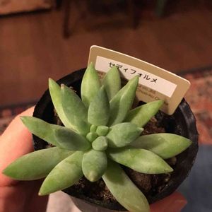 11月10日、100均で入荷したてのほやほやさん『セディフォルメ』を連れ帰る🎵 聞いたことのなかった名前の子、欲しかった『樹氷』に似てる❓ 少し大きめの鉢へ……土が見えるのは嫌だけど、おひとりさま管理はなかなか楽しい🎵