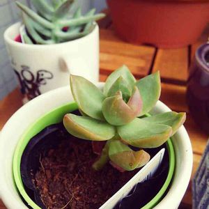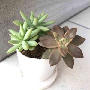 数珠星と若緑の抜き苗をいただいたので、ツンツン寄せ植えに挿してみました(◍•ᴗ•◍) 早くぎゅうぎゅうにならないかな( ›ω‹ )
