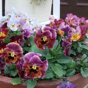 レトロっぽい感じにしたくてくすみカラーのパンジーを寄せ植えしました。 パンジーやビオラは色も形もいろいろあるので、イメージに合わせて選ぶのが楽しいです。