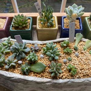 植替え作業🔀 粛々と😑💬 札無しっ子🌱 鉢を変えたら立派な子😍✨ 肉厚、粉っ子、むちむち、爪💅 いろんな子🥰✨ 綴化ちゃん🍒 大和錦っぽい子が😎いぶし銀✨ 鉢で印象が変わりました☺️👍