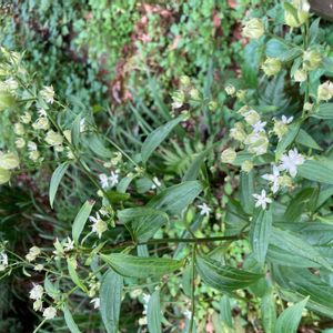アケボノソウ(曙草) リンドウ科センブリ属の二年草 北海道、本州、四国、九州に分布 山地のやや湿った所に生える 夕暮れ時、白い花は、瞬いている星のようにも見えました😆 薄暗かったので、よく見えませんでしたが、帰宅後、写真を見てみると、アリ🐜のような虫が何匹か、 花についていました。 裂片の黄緑色の2つの点々は、蜜を分泌する所だそうです。 まだ咲いていない蕾にまで、虫がついていて😅、今か今かと、花が開くのを待っているようでした😄