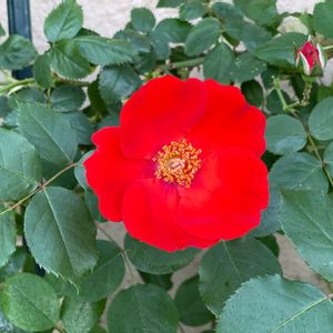 今朝の一枚* つる*サラバンドが咲きだした… ダブル咲きが多いので、玄関前は あえて一重でうるさくない様に植 えています🌹