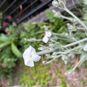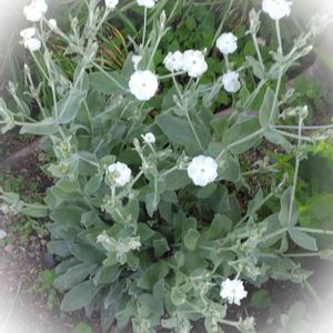 🌹庭便り🌹 リクニス(白) シルバーリーフに真っ白な花 毎年 こぼれ種で 庭のどこかで 咲く お利口さん😊🙆