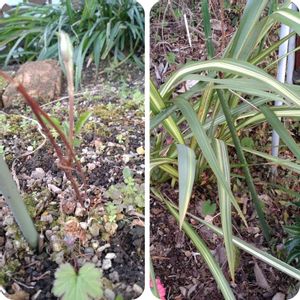 右 ニューサイラン(?) 大きなカラーリーフです。 これが畳半畳以上の大株になり、草丈も腰高あったのを9割がた抜きました。 そしたら・・・ 左 テッセン 10年近く見ていなかった苗が下から出てきました✨ 私が抜いてしまったと何度も責められていたのに、あるじゃないの〜😂 冤罪だぞ、冤罪💢 長年日に当たっていなかったテッセン、咲いてくれるかなぁ。