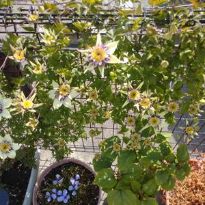 我が家のクレマチス、今年も咲いています😊🌸 今年は花は小ぶりですがめっちゃたくさんの蕾が付き、数十個の花が次々と咲いています😆💕 花数が多くて密になって咲いてます♪ 本当は地植えにしてあげたほうが大きくなって良いんだろうなぁ…。 鉢植えだけど頑張って咲いてくれてありがとう😊❤️