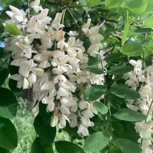 「今日のお花」 ニセアカシア マメ科ハリエンジュ属 落葉高木 別名 ハリエンジュ 白いフジの花にも見えます🤍🎶 北アメリカを原産とするマメ科の落葉広葉樹。 単にアカシアと呼ばれることも多いが正式名称はハリエンジュであり、エンジュに似た葉を持ち、枝や幹にトゲがあることに由来する。 涼しげな葉の様子や初夏に咲く甘い香りの花が好まれ、街路や公園に使われる。 エンジュなど他のマメ科の樹木と同様、根に「根粒菌」という菌を共生させており、根が水に浸かった状態でも育つ。また、タケやササのように横に張った根の途中から新たな幹を立ち上げる性質を持つことから、条件の悪い土地にも耐える。 なるほど、私が見た木も、湿った林の中でした。 近くには寄れないので、遠目からしか撮れませんでしたが、白い花の塊はとても目を惹きました🤍✨🥰🎶