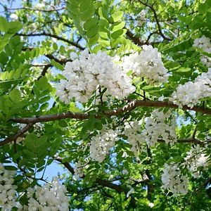 林の中でほのかな甘〜い香り。 藤の花に似た白い蝶形の花。 贋アカシア。別名:針槐。 *マメ科ハリエンジュ属