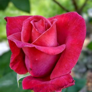 我が家の庭から🎶 おはようございます いいお天気です☀️ ブラックティ 今年の一番花 朝日にシックな赤が映えてます💕
