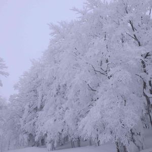 孫とスキー⛷行きました。 (孫だけ)滑る人は一人凄い吹雪で帰り道の雑木林は一面花が咲いてました。 モノクロの世界いいですね💞