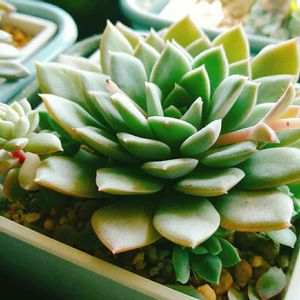 かくれんぼ🍀その3✨ 淡い緑の真ん中が淡いピンクの銀武源💕 赤い縁取りが可愛い~紅化粧💕 ………え?お一人様で隠れてない(^^*)💦 大丈夫、古いリメ缶に入れたので、隠れてます(笑) すっかり今までいたかのように……… 馴染んでます( ´艸`)🌼 この子たちも、ホント色合いが素敵です❤💙💚