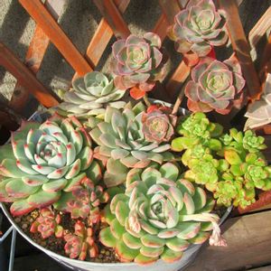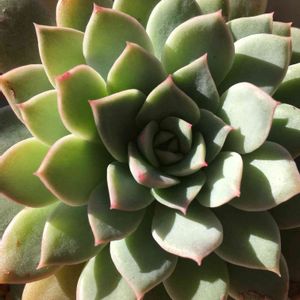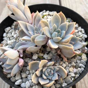 簡易ビニールハウスのエケベリア 陽が当たり始めると中の温度が40度超えるので、 毎朝カバーを外し、陽が傾いたらカバーを戻します。 カバーの内側には、夜間の寒さと日中の厳しい陽射し対策に、白い寒冷紗を掛けています。 だからほとんど中の多肉を見られない💦 今朝、水をあげるついでに久々にじっくり観察〜 花うららは双頭だったのに、片方は葉焼け酷くて枯れてしまった… 真冬なのに陽射しホントにキツすぎ💦