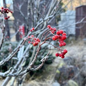 ナナカマドの実に霜が降りています。長野県平谷村高嶺山⛰️へ熊スプレー🐻を持って登って来ました。⑤が総メンバーです🏃♂️➡️