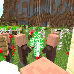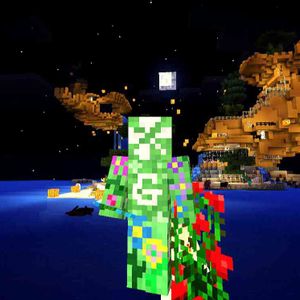 マイクラで『GREENSNAPマン』を作ってみました。顔がgreensnapのロゴ風ってだけです笑♪( ´▽`) マイクラ内は何処もかしこも花だらけにしています🌻 一応和風建築作ってるので和モダンコンテストに応募します笑