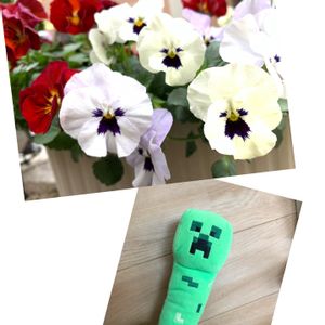 カインズホームに行ってきた 花苗にたくさんの人面花 なーんか見た顔なんだよなぁと 思ってたら娘が 「クリーパーがいっぱい…」 あー❗マイクラのクリーパーに 似てるんだ‼️😅 クリーパーの花壇…有りかな?😁 ぜひ緑色の花を開発してもらいたい🎵