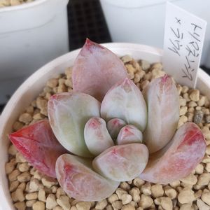 今日も雪❄のチラつく寒い一日でした😣 お迎え3年目の エケベリア・カサンドラ (カンテ×シャビアナ交配) 下葉カリカリで小さくなったみたいです😓でもピンク色のフリフリが可愛い薄葉のエケベリアです~💝