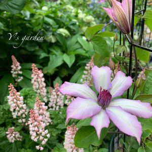 いろいろなクレマチスが咲き出しました。 去年から欲しかったアフロディーテ ナナミールを最近やっとお迎えすることができました。 大好きなアフロディーテ エレガ フミナと作出者は違いますが、同じインテグリフォリア系です。 ツルは出ないタイプでお花は中輪、背丈もコンパクトです。 フミナより少し大きめのお花で、紫の縁取りが美しいです。 ご近所の湘南クレマチス園のオープン農場でゲット。 こちらのナーサリーは今の時期、毎週日曜日直売しています。 水面の妖精も並んでました。 ほしいものがたくさんあって、ついつい今年もいくつかお迎えしてしまいました。 左のお花はヒューケレラ フレッシュグリーンだったかな。 ヒューケラとティアレアの交配種です。 可愛くてこちらも大好き。