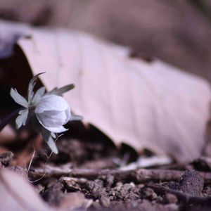 自然観察園にて 節分草が土を割って芽を出していました。 大きく見えますが、とても小さいです。