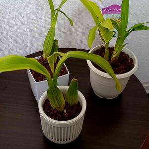 ネット購入したオンシジウム アロハイワナガ ペレポストで植え替えしました 膨張するコンポストで、四角のプラ鉢は斜めになって植え付けてしまったけど、修整出来ない😓 とりあえず、元気になってくれる事を願います🙏 黄色い蝶々が飛ぶような花が見たいですねぇ😅