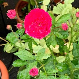 鉢植えしてる一季咲きのロサ・ガリカガリカ咲き始めました❗️🌹😊 秋にはローズヒップも楽しめます❗️☺️