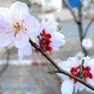 〜梅の花〜 薄桃色の梅が近所の公園で咲いてました🌸 よく見ると赤い萼がとても可愛らしかったです❣️ 白梅も隣にありそこだけとても 春めいていましたよ〜🌸