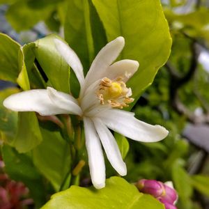 ご近所さんの畑でレモンの花が咲いていました🤍✨ 柑橘系の甘い香りがして 周りにハチさんもブンブン🐝 邪魔してごめんなさい💦