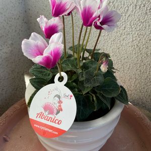 今日 シクラメン買う人 多く、 私も 前買った色と 違うミニシクラメンを🌸❣️ 安いので、2つ 買いました〜、 室内用の 可愛い💕〜ミニシクラメン🌸 ポット苗🌱から、白い鉢に 鉢上げしました‼️ あとは ももかの みかんももか🍊 と、ラビットランドを お一人様で 植えます❗️^_^