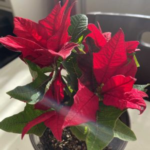 こんにちは。 南西向きのリビングに、ようやく日差しが入ってきました。 午後は明るくて暖かいです。 先週出かけた先で衝動買いしたポインセチア。 昨日のpicです。 赤い苞が小さめで、それがまた可愛い💕 テーブルに置いてたら、日差しに透けた苞がきれいでした。 🏷️クリスマス月間 参加します。