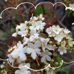 エッ⁉️⁉️💬 この花は、オオデマリの枝の先に咲いています。 だけど、春に咲く、あの綺麗な半円を描いたような花付きではありません。 枝先に少し、遠目からは、クシャっと白い小花を咲かせている感じです。❓❓❓💭 これは、狂い咲きと言われる現象でしょうか。🍀💓💕 💝🌟😄 ユーザーの方から、教えていただきました。🍀 狂い咲きっていうのは、聞こえがよくないから、💗早咲きっていうと良いよって。😄💖 ホントになんて素敵な表現でしょう。🌟🍀🥰 これからは、そういうことにします。😘 ユーザーさん、ありがとうございました。💞💝🙇