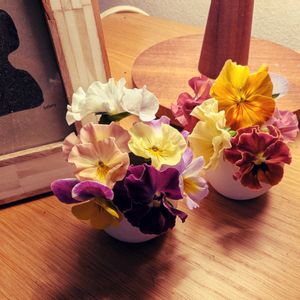 手入れがてら少し摘み取ったビオラと一緒にコーヒーブレイク。