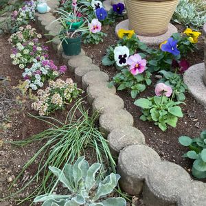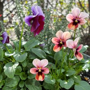 パンジーや ビオラ、よくある品種ですが、紫🟣系 3つ 集まっています〜💓 4枚目は ハーブ🌿達❣️ 夏は、1つずつが 伸び合って、何が 生えてるか....?分からないぐらいでしたが、、、今は やっと スッキリしました。。。 涼しい方が 良く育つ イタリアン ・パセリ🌿 使い方が 良く分からず、ワンパターン💦 パスタや スープに 上に飾って、青みに 使っています〜❗️^_^ 5枚目は 庭の端っこだから、あまり 見なくて、放ったらかしの狭い路地 ...... リュウノヒゲ🌱が 陽当たり イマイチでも、どんどん 育ってくれて、良い仕事してくれてます‼️ 良い天気☀️に なって来ました❗️ 今日は、何をするにも 爽やかな 日中に なりそう〜です💓🎶