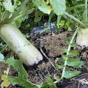 9月に蒔いた大根。種蒔き後から防虫ネット掛けていたけど、今朝取ったら夜盗虫が結構いました🐛今日辺り収穫する予定です😃