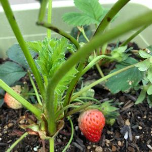 苺苗の植え付け😊 置き場を考えて、軽いプラ鉢にしました😊
