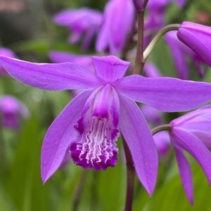 今日のお花🔸シラン🔸 (5月撮影) 丈夫で増えるので、株分けして庭や畑の数か所に広がっています🥰 気品のある花です✨🤍💜🤍✨
