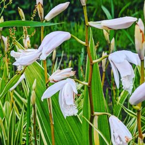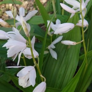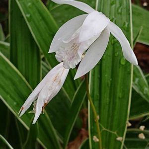 去年ご近所さんに貰った 白いシラン 斑入りの葉っぱも綺麗です😊