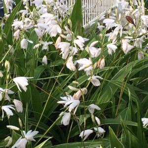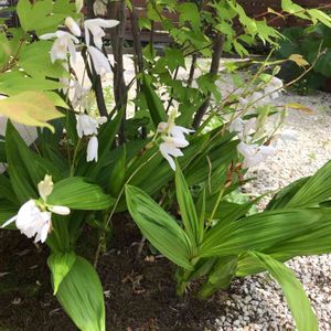 この白くて小さなお花何て名前ですか?教えてくださいませ~⬅️「シロシラン 白紫蘭」ですね🎵教えて頂きありがとうございました~🍀 花言葉は、あなたを忘れない、お互い忘れないように、美しい姿、変わらぬ愛、薄れゆく愛、ですね🍀