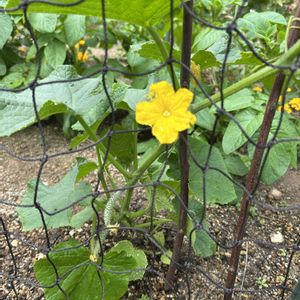 こんばんは きゅうり少しずつ大きくなってます。春菊とセロリは、花芽ができてきてそろそろ終わりでしょうか。セロリのピクルス名残惜しいな!スカビオサとリシマキア開花始まりました♪