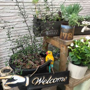 今日もお疲れ様でしたー。 只今うちの玄関先はジャンクっぽくなっております。ディスプレイ考えるのも楽しいですね〜♪ そうそう。隣の家の庭の境目に植えてあるフヨウの木。春からもりもり葉が出てきています。毎年どんどん大きくなっていますが、落ち葉がヤバイ!風でウチの庭にまで入ってきて掃除するのが面倒!拾っては隣に戻したりしていました。そして今年、、、毛虫が発生…💧しかも何匹も、、、、、 アブラムシとアリも酷いのに、それに加えて毛虫とは… もう、容赦なくフマキラーを噴射しました。ボトボト落ちる!:(;゙゚'ω゚'):恐ろしい! 隣の人は管理を全くしません。植えた時は、フヨウが好きなの〜とか言っていたのにほぼ放置。庭からはみ出てますけど??!切らないの?! 毛虫が出て耐え切れないので、次に会ったら言おうと思います。 長い愚痴ですみませんでした。
