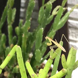 まだ晴れてはいませんが、薄曇りで久しぶりの庭仕事♪ アガベの葉が開き出し、シダ類は生育旺盛!ビカクさんもまたまた大きく😆 子供が去年学校の帰りにコツコツ集めた朝顔の種を撒いたら、見事に整列して芽を出しました🌱毎年ヒョロヒョロで緑のカーテンどころではないので、今年はカーテンになってくれそうな予感w オマケで、多肉棚を整理していたら視線を感じ、見上げた所にカマキリさん発見😁 うちに住み着いてる子だw 一丁前に戦闘態勢になっててちょっと面白かったw