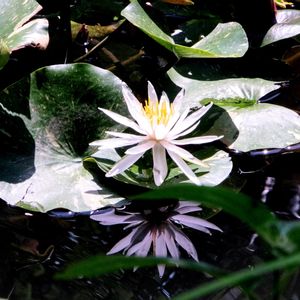 先月末に訪れた 神代植物公園にて⑤ 陽の光を浴びて輝く睡蓮の花 水面に映る静かな花の姿もまた美しい