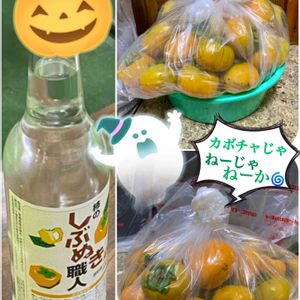 ひらたね柿✨頂きました~🤗 干す用に、ちゃんと軸残して持って来てくれた( ゚Д゚) ス、スゲー! でも……ウチのベランダは風除室になってるから風通らないのョ🌀干しても美味しい干し柿は出来ん😭 よって💨焼酎抜きサ😝