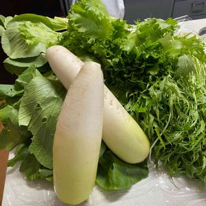 沢山の野菜🥬水菜、フリルレタス、大根 2日前は白菜を頂き🤲ありがたいですね