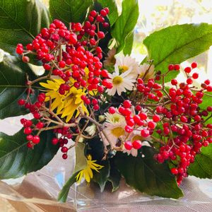 友達から頂きました〜 赤い実に菊のお花で今の時期にぴったり!