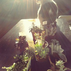 昨日のお買い物。 スマちゃん、テーブルの上はだめでしょう💨 おかあさん、土は、いいの? 😨😨