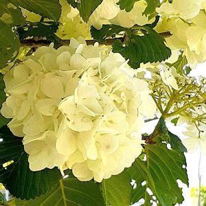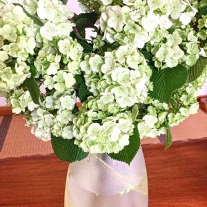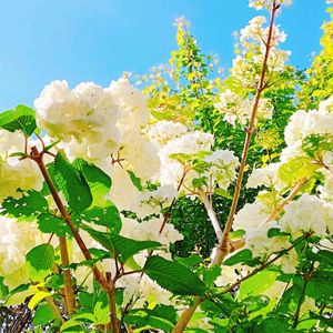 大手毬のお花がキレイなグリーンです。 まさに大きな手毬のよう。 確か3年前は見事にたくさん咲いてくれましたが、去年は全く咲かず、今年は数輪咲いてくれました。 肥料をやるのを忘れていたからかしら。 今回はお礼肥をしっかりあげなくちゃ。 スノーボールとお花がよく似ています。 好きなお花なので、昨年スノーボールもお迎えしました。 樹形と葉っぱの形がかなり違います。