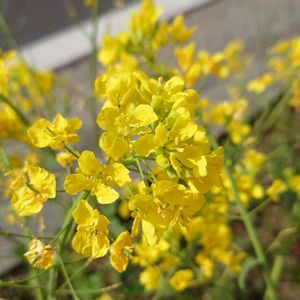 西洋油菜(セイヨウアブラナ)/菜の花(ナノハナ)/菜花(ナバナ) アブラナ科アブラナ属の1~越年草。明治時代初期にヨーロッパから入り、菜種油をとるために栽培され野生化した帰化植物。花期は2~5月。春になると畑や空き地、河原や土手などに群生し『菜の花』として春の訪れを知らせる。野生のカブとキャベツの自然交雑種で、立派なものではカブやダイコンを思わせるサイズにまで根が太くなるが、かたくて食べられない。茎や葉には白粉をまぶしたような特徴がある。蕾は『菜花(なばな)』と呼ばれ、食卓にも春を運ぶ。花は鮮やかな黄色で花弁は十字形に並ぶ。萼片は開かないで目立つ。果実は長角果で長さ5~10㎝、先は細いくちばし状になる。種子は暗褐色、ほぼ球形で果実の中に1列に並ぶ。 菜の花とよばれる植物は多数あり、製油用に栽培もされる本種や、最近は見かけないが弥生時代に中国から渡来したといわれる油菜(アブラナ)、観賞用に栽培される花菜(ハナナ)、縮緬白菜(チリメンハクサイ)とアブラナを交配したチリメンアブラナなどがある。 よく似た西洋芥子菜(セイヨウカラシナ)とは葉で見分ける。本種の葉は基部が耳状に張り出して茎を抱くが、西洋芥子菜の基部は茎を抱くことはなく、花がひとまわり小型。 弥生時代に中国から渡来し、種子を絞って灯油などの油にしたアブラナが名前の由来。本種も外国から渡来した種で、頭にセイヨウがつき、ほかのアブラナの仲間と区別されている。 出典『野に咲く花』『散歩の草花図鑑』『野草の名前』
