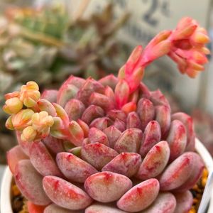 クラッスラ 玉椿💕 お花は爽やかなとても良い香りがするって ネットで見て 欲しくて欲しくて、子苗だけど ようやくゲットしました♡ 咲いたら右下のようなお花らしのです。 徒長しやすいらしくて水遣りは控え目みたい。